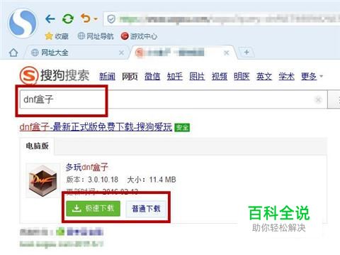 我们在使用时装模拟器首先需要拥有dnf盒子,我们需要打开浏览器,在搜索窗口输入“dnf盒子”,我们找到下载的地方,如图所示。
