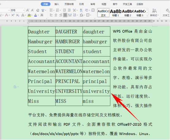 这样我们就看到表格和文档已经分开排列了,文档也不再环绕着表格进行分布了。