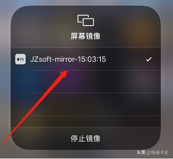 第三步,在【屏幕镜像】来选择连接的设备,以【JZsoft】开头的设备就是这个软件设备的名称了,点击连接即可。