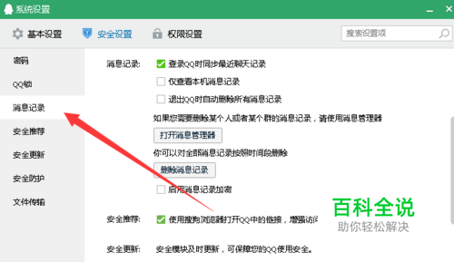 在“安全设置”界面下,找到“消息记录”,并点击。