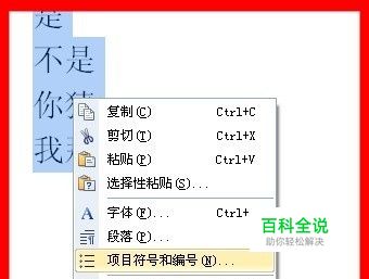 选择四个答案,右击点击鼠标,选择项目符号和编号。