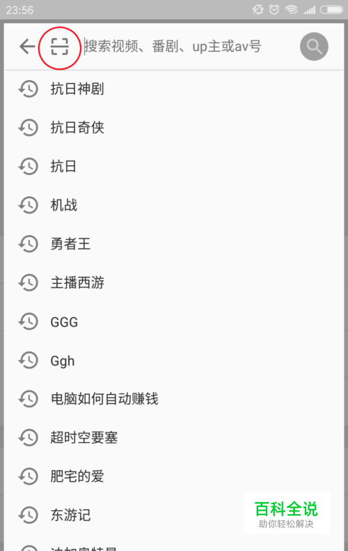 点开搜索栏,点击红圈内的按钮,即可开启扫码功能