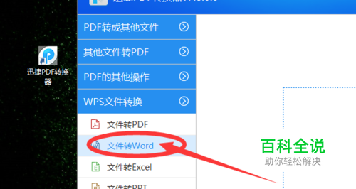 安装完成后,双击运行进入PDF转换器页面。我们需要转换的是WPS文件,鼠标移动到左侧栏目框,选择WPS文件转换,点击打开下拉,会看到也分成了好几个子类目,点击选择文件转换word。