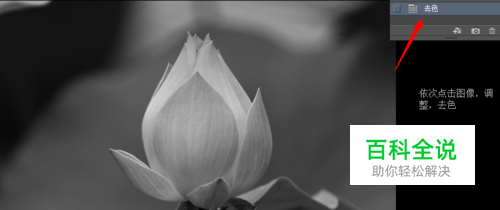 再进行去色处理,快捷键CTRL+SHIFT+U。具体步骤是单击“图像”菜单栏,选择“调整”选项,找到“去色”命令后点击确定,得到如下的图片。