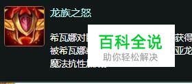 被动技能:龙族之怒 希瓦娜对巨龙们造成额外伤害并获得护甲加成和魔法抗性加成。被希瓦娜或她的友军击败的元素亚龙们会为她提供额外的护甲和魔法抗性加成。
