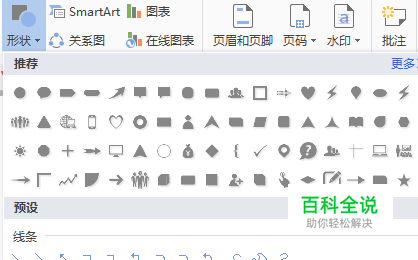 插入菜单下面有一个“形状”选项,点开倒三角。会出现不同的形状如图所示。选择一个图形作为标注的样子,例如我选择矩形。