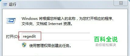 3、在运行框中键入“regedit”确定,再打开注册表。