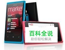 诺基亚Lumia系列首款Windows Phone手机Lumia 800,外观灵感来自于诺基亚N9的聚碳酸酯一体成型设置,正面增加了三个Windows Phone需要的按键。配色方面仍然是N9的“墨黑、湖蓝、品红”三种。