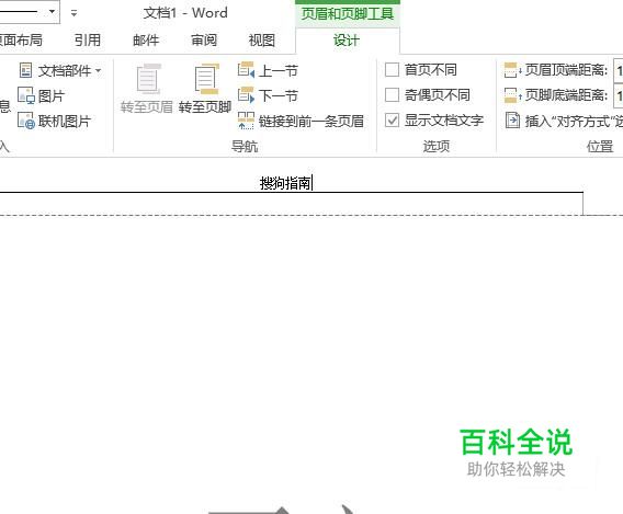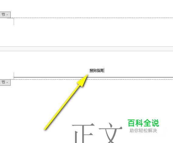 接着,在正文的页眉这里输入内容,比如,搜狗指南;
