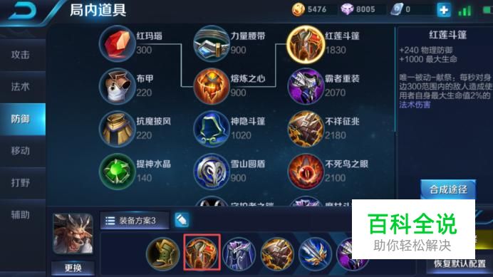 第二件装备我们可以出红莲斗篷,这件装备可以提供我们240的防御能力,然后还能加1000点血量,这个装备可以让前期的牛魔不会被对方的刺客英雄直接抓,还是非常不错的,而且被动技能还能加速清小兵。