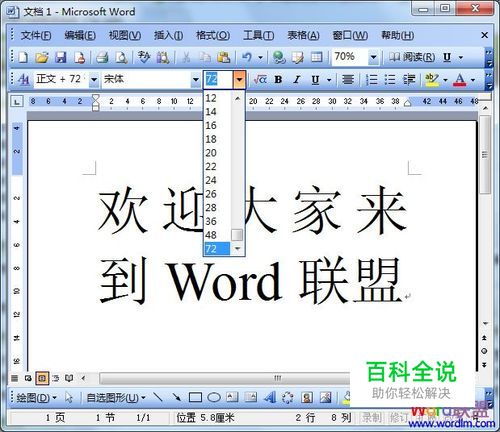 在制作一些海报或者广告牌的时候我们可能会将标题或者题目的字体设置超大型,但是Word2003中的字体大小默认最多也只是“72”号,完全无法满足我们的需求,难道就没其他的方法能放大字体吗?其实Word中可以将字体无限放大,只是我们被眼前的一些东西给遮住了视线而已,