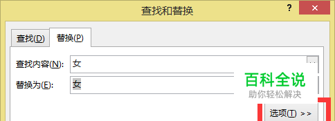 在弹出的对话框/【替换】选项卡,单击【选项】