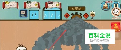 买车票:将行李箱旁边的钱撒到人群中,排队的人抢钱就可以去买票了。