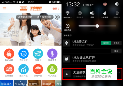 某些软件界面无法截图,比如安微农村信用社、平安天下通等,下拉状态栏提示“无法捕获屏幕截图”。