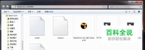 下载下来的有6个文件。第一个是英文安装说明,第二个是NUKE注册许可文件,第三个是64位安装文件,第四五个是32位和64位的破解,第六个是中文安装说明 下面开始安装