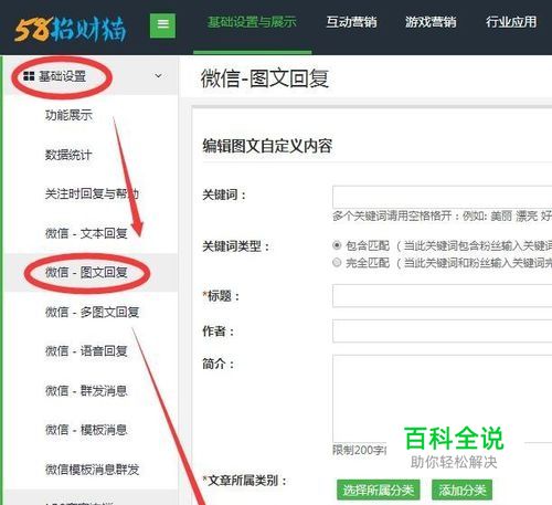 登陆58招财猫,绑定公众号之后,在管理中心-功能管理-基础设置-图文回复,新增图文回复素材,可以看到有打赏功能,选择开启