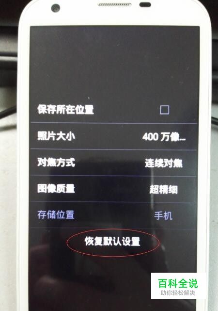 进入拍照模式,点开手机拍照选项,进入设置点击恢复默认值,恢复正常,但是不久又出现了这种问题,这样不能根治。