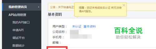 电子面单是通过对接API使用的,先是注册账号,登录后就可以看到自己的ID和API KEY,注册之后就认证,认证很简单,填写信息提交就可以了,不用等审核