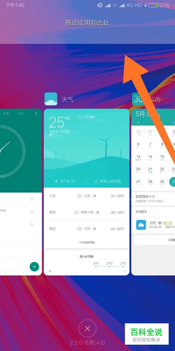 接下来把需要分屏运行的一个应用拖拽到屏幕上方。