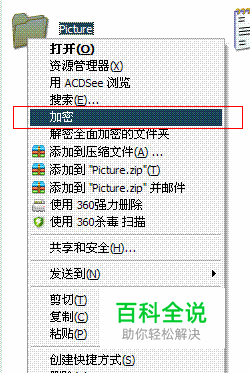 打开"我的电脑"(如果是win 7 系统是计算机),找到想要进行加密的文件夹,在文件夹上单击鼠标右键,然后在弹出的的菜单中选择"加密"。