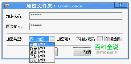 文件夹超级加密大师对文件夹的加密提供了五种类型,"闪电加密"、"隐藏加密"、"全面加密"、"金钻加密"和"移动加密"。 闪电加密和隐藏加密是两种快速加密的方式,特点是加密和解密速度快,并且不受文件夹的大小限制,适合加密超大的文件夹。 如果你选择的是闪电加密,加密会在瞬间完成。