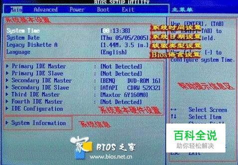 一.Main(标准设定) 此菜单可对基本的系统配置进行设定。如时间,日期等。 图2 其中 Primary/Secondary IDE Master/Slave 是从主IDE装置。 如果你的主板支持SATA接口就会有Third/Fourth IDE Mastert或者更多,他们分别管理例电脑里面各个IDE驱动装置的,如硬盘,光驱等等!因为各个主板的设置不同,所以在此就不详细解说这里的设置了,但是这些一般不用用户自己去设置,一般用默认的就可以,如果有特殊要求,建议用户自己对照说明书的说明进行设置,或者在论坛里单独提问! System Information 这是显示系统基本硬件信息的,没有什么好讲(如图3) 图3 基本设置了解后就进入高级设置了!