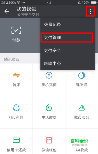 进入微信钱包--支付管理