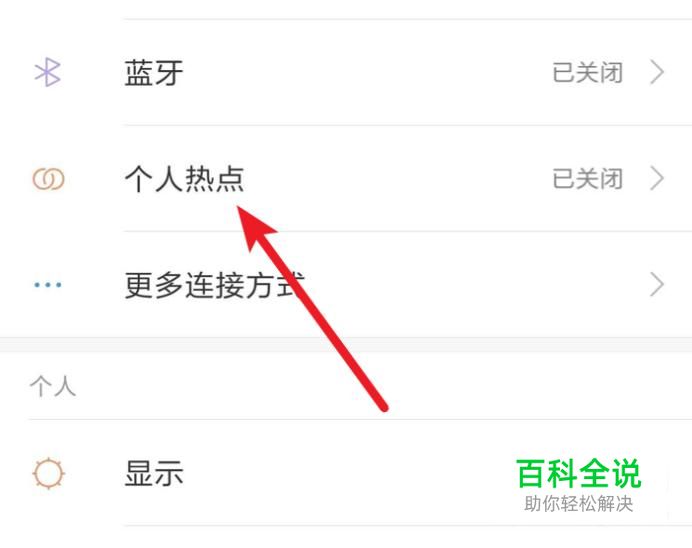 来到设置页面,就可以看到一个‘个人热点’的选项了,点击打开。
