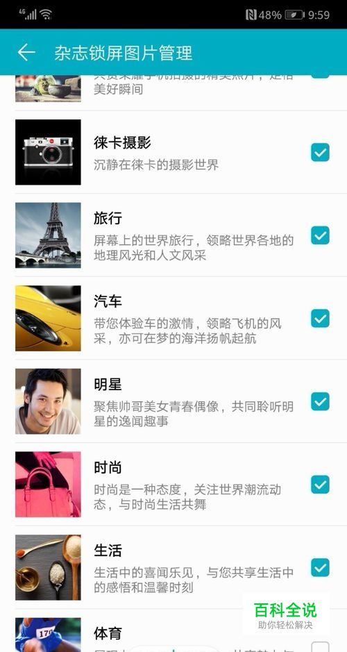 华为手机对杂志锁屏图片进行管理就是选择自己感兴趣的图片作为锁屏图片。