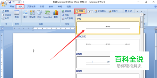 我们先插入页眉。 打开Word文档,点击工具栏中的【插入】,然后点击菜单选项中的【页眉】,选中一个页眉格式插入。