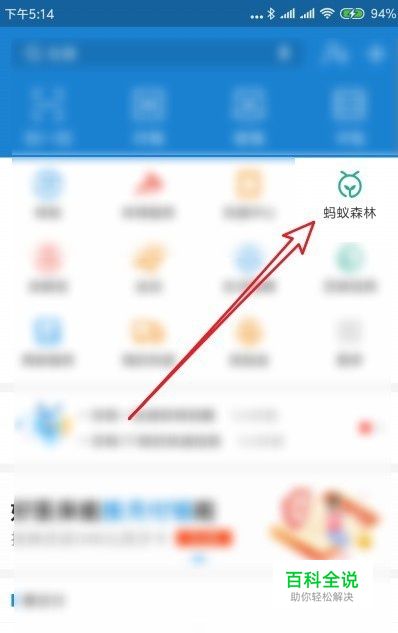 首先我们在手机上打开支付宝,在打开的支付宝应用软件主界面,我们点击“蚂蚁森林”的图标。