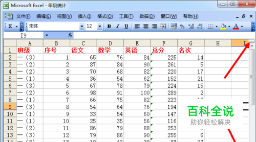 当我们只看总分和名次时班级和序号依旧可见,说明这两列的确被冻结了。这样,我们整个工作就结束了。