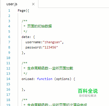 第六步,再次在user.js中,添加页面需要的数据和点击或触摸事件,如下图所示: