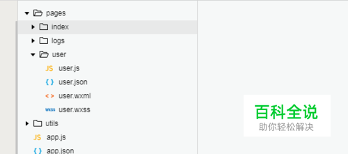 第二步,在pages文件夹下创建一个user文件夹,然后在这个文件下分别创建js、json、wxml和wxss文件,如下图所示: