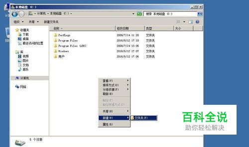 我们先建立一个用来共享的文件夹。 点击鼠标右键,选择“新建”--“文件夹”。