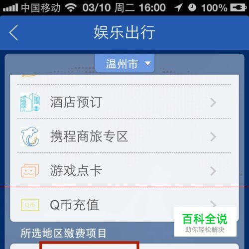 2、一般如果你开启了定位,该app会自动定位到你的城市,并把你所在城市的缴费项目罗列出来。如果没有开启,需要手工选择城市。点击“所选地区缴费项目”中的【交通罚单】。