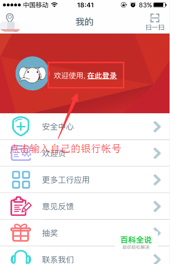 接着进入工商银行主页后,在右下角“我的”页面中我们点击该页面的“在此登录”按键。