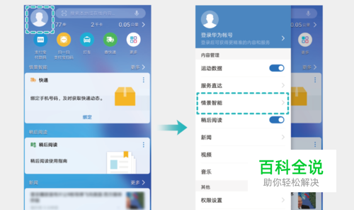 在某宝上买的东西,想看下快递到哪了?绑定手机号后,华为畅享 8 Plus 可以自动为你推送你的物流信息,无需额外下 载应用或搜索网页查询。 设置步骤: 在主屏幕向右滑动,进入【智能助手】界面,然后点击左上角头像,点击【情景智能】>【快递】>【添加】,根据提示绑定收快递的手 机号。
