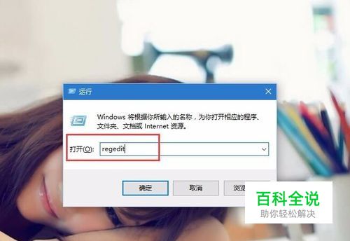 首先,请大家在Win10桌面上按下Windows徽标键+R键,在打开的运行窗口中输入“ regedit”关键字,打开注册表编辑器页面。