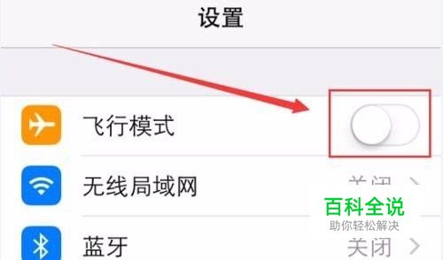 方法一:开启飞行模式后再关闭 有时候手机由于周围环境网络比较差,会导致信号处于无服务状态,这时后我们开启飞行模式后再关闭飞行模式,系统就会重新搜索网络信号。在手机中打开【设置】,然后打开【飞行模式】选项右侧的按钮,等几秒后再关闭即可。如下图所示。