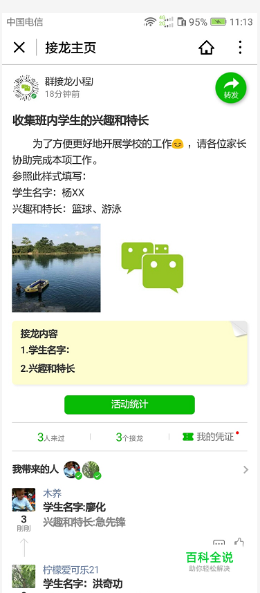 把这接龙活动转发到班级群 ,家长就可以填写资料了