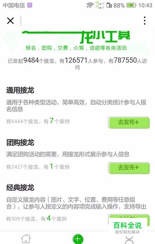 点击“发布接龙”,点击“经典接龙”下的“去发布”按钮,