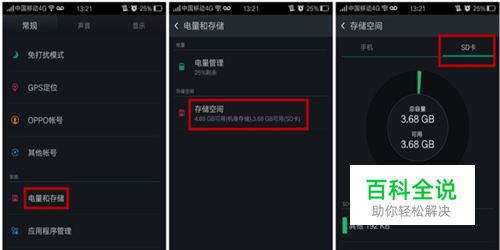 手机装上了SD卡后,正常读取是可以通过两种方法查看到的,如图所示(以R7手机为例): 1 进入手机设置--电量和存储--存储空间--SD卡;(若没有读取成功,则不会显示SD卡选项) 2、进入文件管理--存储--查看是否SD卡;