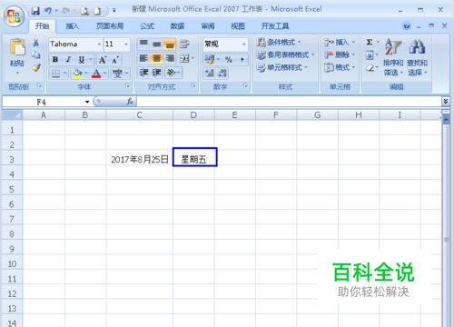 也可直接在fx那里直接输入函数“=TEXT(C3,"aaaa")”,然后点击enter键即可显示日期(如图)。