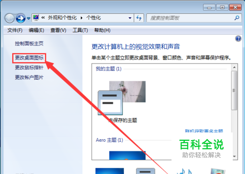 打开个性化设置窗口之后,我们点击左边上的“更改桌面图标”选项 如图