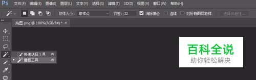 在菜单的侧面找到 魔棒工具 这里有2个工具, 第一次选择的是 魔棒工具