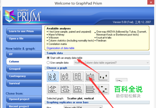 创建好后弹出如下的对话框,选择我们需要的数据呈现方式,一般我们在统计pcr,蛋白的结果的时候选用柱形图,然后我们勾选空数据,自己来填充数据