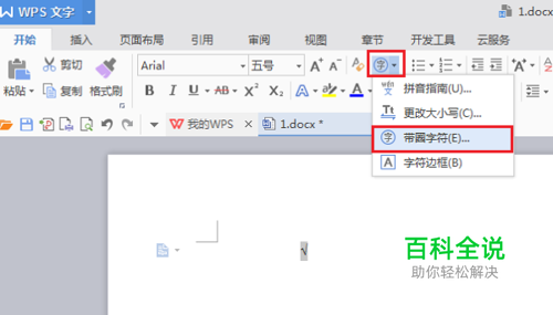 第二步插入√之后,在开始页面,选择上已经插入的√,点击字->带圈字符,需要注意的是要选择√单个字符,不能多选空格,如下图所示: