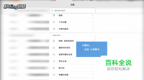 打开手机,点击“设置”,下拉界面,点击“小米账号”。