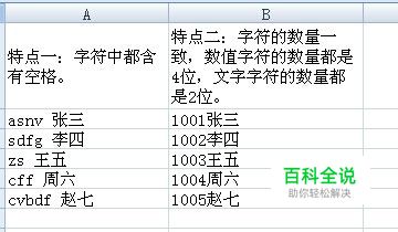 首先观察字符串的特点,不同的特点可以使用不同的方法。如下图所示,对于特点一的情况,因为有相同字符“空格”的存在,可以使用“替换”法,特点二的情况,因为字符数一样,最方便的方法是公式法。